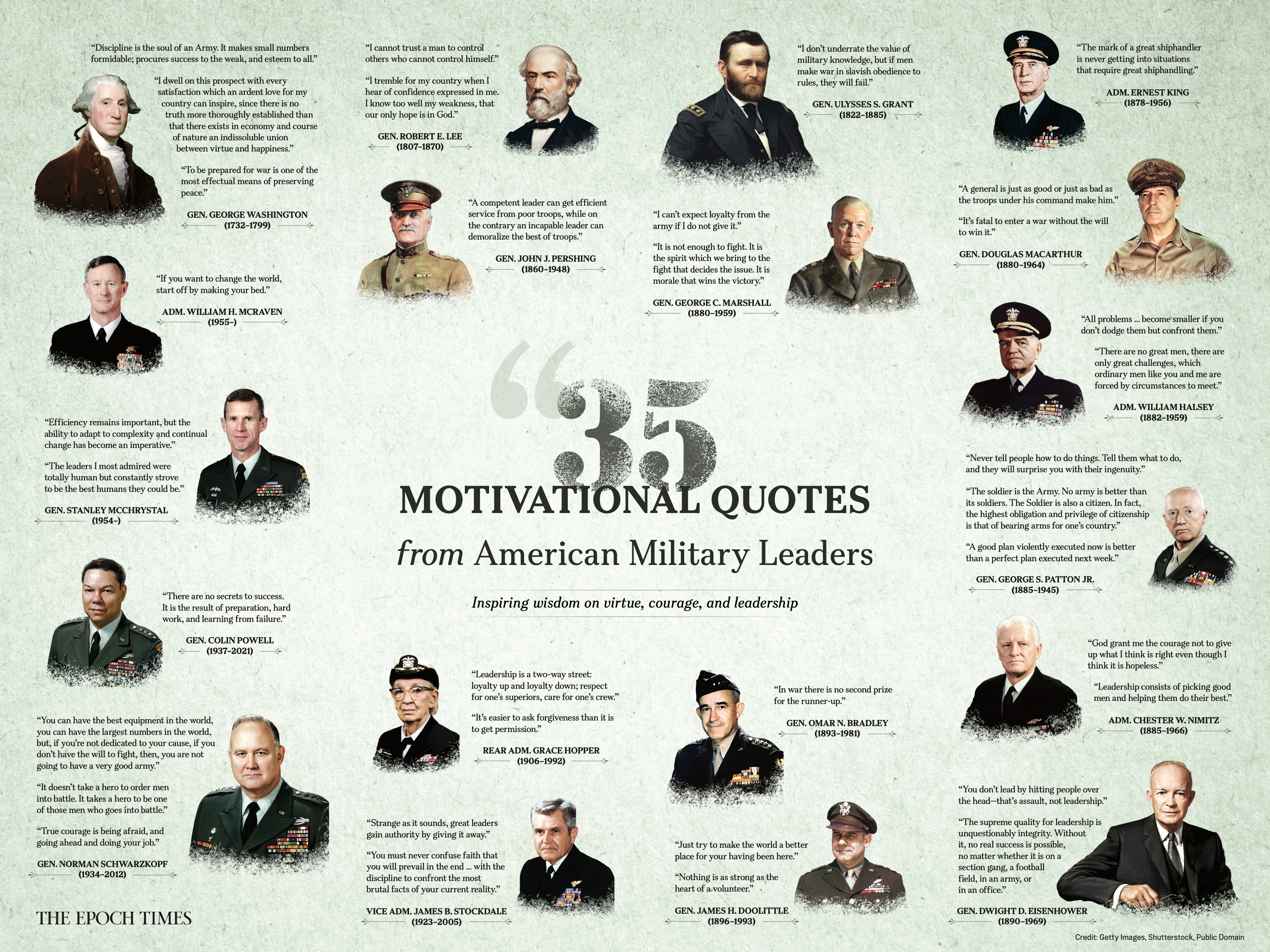 35 Motivational Quotes from American Military Leaders brings together timeless reflections on duty, discipline, courage, and service—drawn from figures who shaped American history through character as much as command. This carefully designed print presents quotations from generals, admirals, and commanders whose words continue to guide leaders, citizens, and families seeking clarity in uncertain times.