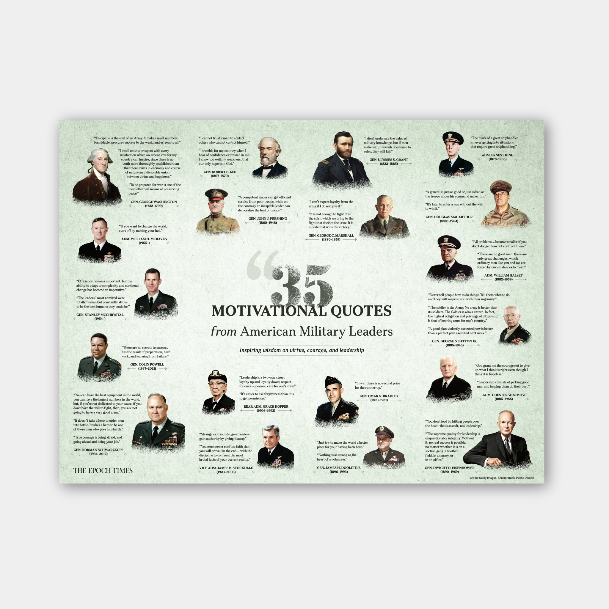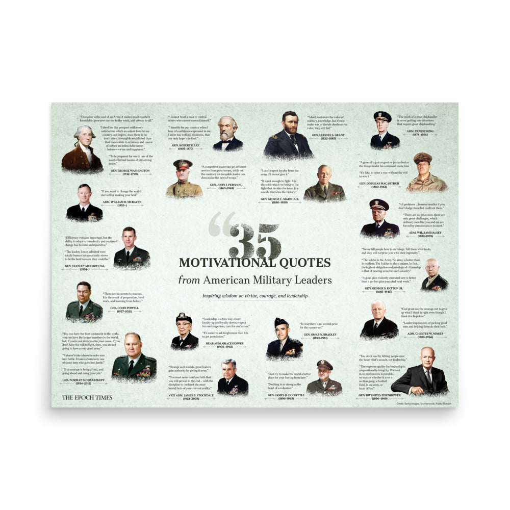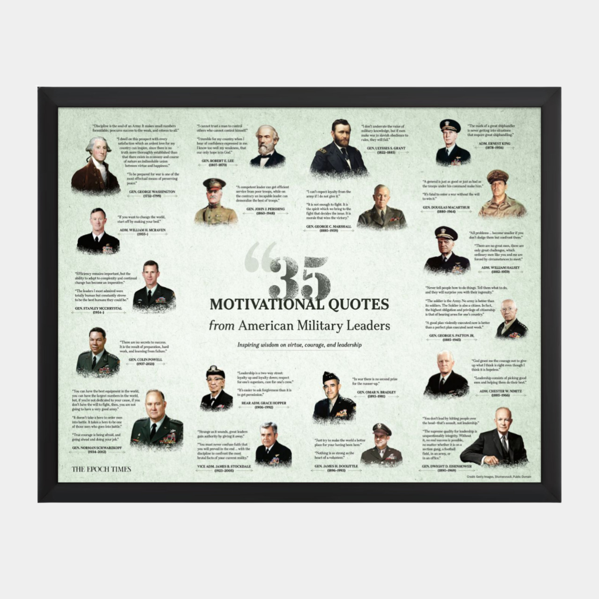 A thoughtfully composed art print featuring enduring words of leadership, courage, and moral clarity from America’s most respected military leaders.