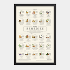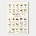Organized into clear sections—such as Cold & Flu, Digestion, Pain, Skin, Mental Health, Sleep, and Reproductive Health—the poster allows readers to quickly locate remedies relevant to specific concerns. The layout combines clean typography, botanical illustrations, and concise descriptions, creating a resource that is both informative and visually engaging.